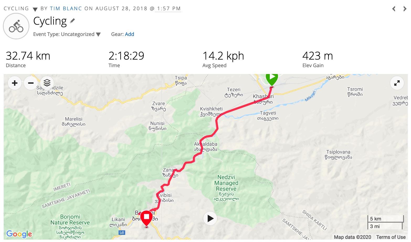 The father tells us not to do what we planned as the roads are terrible and tells us to cycle over the nearby mountain then get a train. Kindly, (God this family are the kindest ever!!) he drives over the mountain with our panniers and the massive khachapuri in his car, whilst we cycle, unencumbered. On the way we stop to try and find fuel. The family have already offered us all their candles, we didn’t explain what we meant by “paraffin” very well and on the way, the father takes us to a hardware/paint shop where we can only find a big bottle acetone spray paint thinner, that would be somewhat explosive in our multi-fuel cooker ! In the end, we go to a petrol station & fill our metal fuel bottle there.