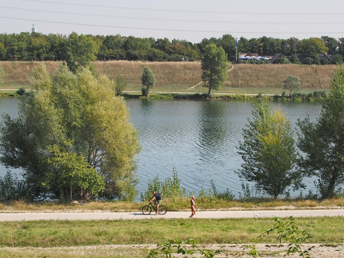 We cycled into Vienna (only 40km) so we were at our campsite for lunch. Itβs not so nice here. And its very noisy at night with people putting up tents at all hours, not to mention the motorway next to the site and trains running really close. The morning dew on the tents was actually brown!